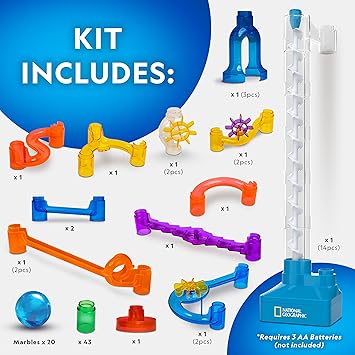 تعلم مع ناشيونال جيوغرافيك - مع ألعاب STEM من ناشيونال جيوغرافيك، يكون التعلم دائمًا جزءًا من المتعة. يحتوي دليل التعلم المرفق على حقائق رائعة حول الفيزياء والحركة والمزيد. كما يحتوي أيضًا على نصائح لبناء مسارات رخامية مذهلة.