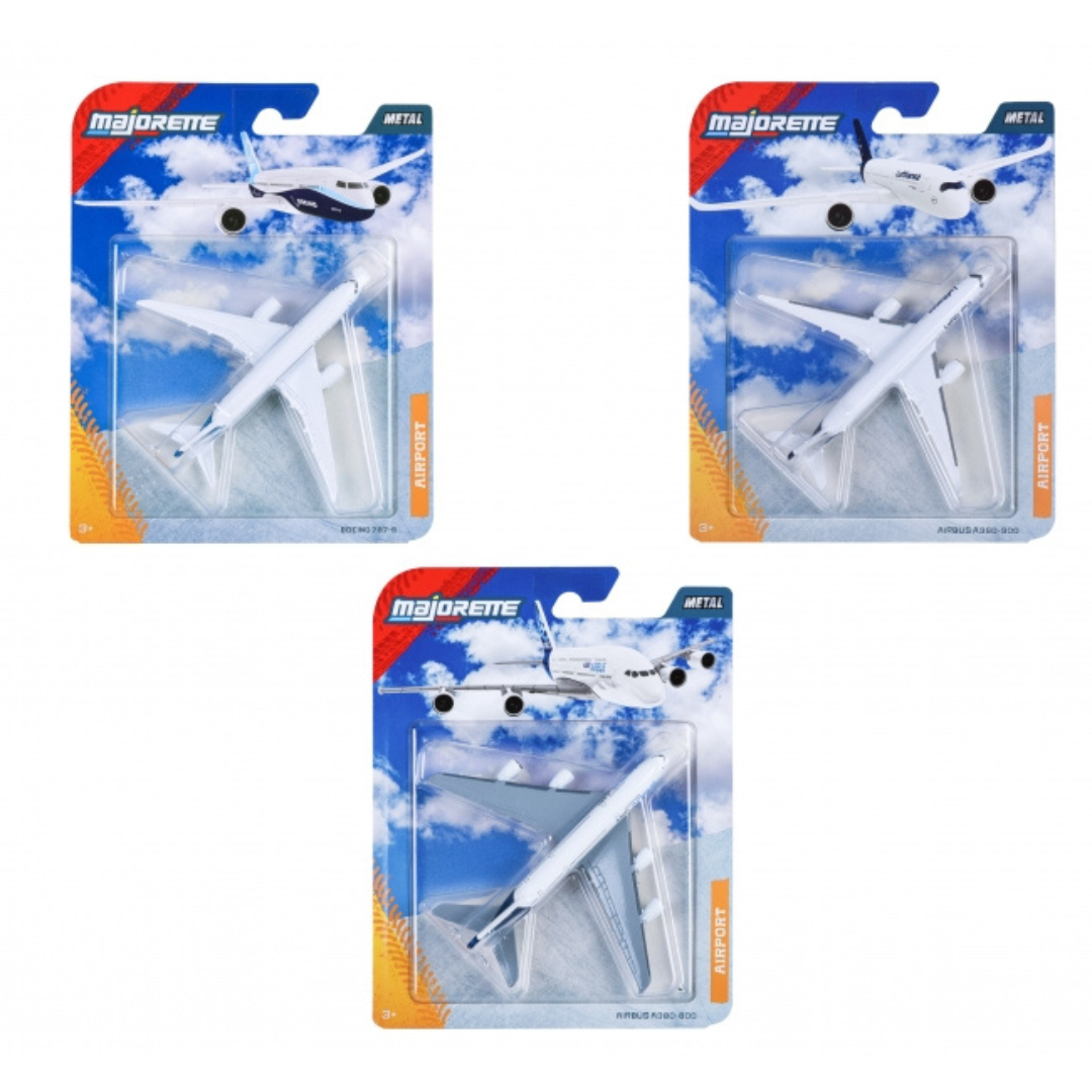 Majorette metal passenger planes are miniature models inspired by real airlines such as Airbus and Lufthansa. Each faithfully reproduces the details of the original aircraft – from the shape of the wings to the carrier markings and logos. This makes them a great toy for both children dreaming of flying and aviation enthusiasts. Playing with planes sparks the imagination and encourages them to create their own travel stories. Children can create routes, simulate takeoffs and landings, and develop an interest in the world of technology and transportation. Each model is made of metal with plastic components, ensuring durability and a stylish appearance. The planes are approximately 13 cm long. Majorette planes are a great choice for young travelers and collectors who enjoy exploring the world through play. Random shipping, price is for one piece.